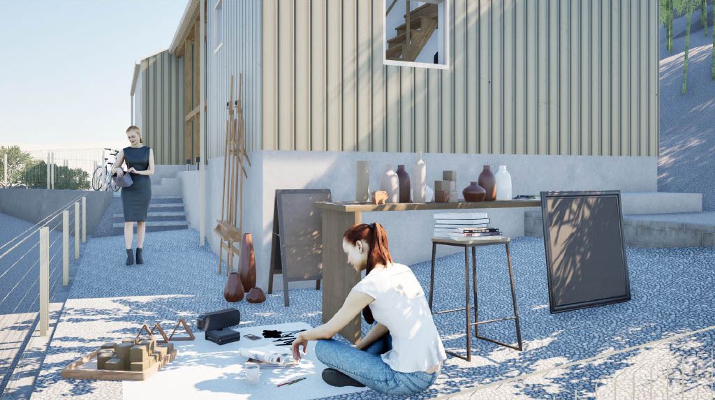 に向けて計画された、アトリエ付き賃貸住宅です。